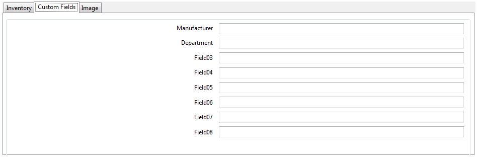 These fields can be set to whatever value you wish. To change the name of any custom field double click the label and rename the field. In the above example Custom Fields 1 and 2 have been changed to Manufacturer and Department.