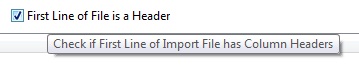 In the above example the cursor has hovered over the First Line of File is a Header check box. The Help Tip is the line that appears below the control.
